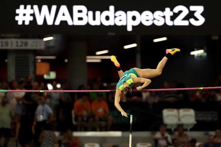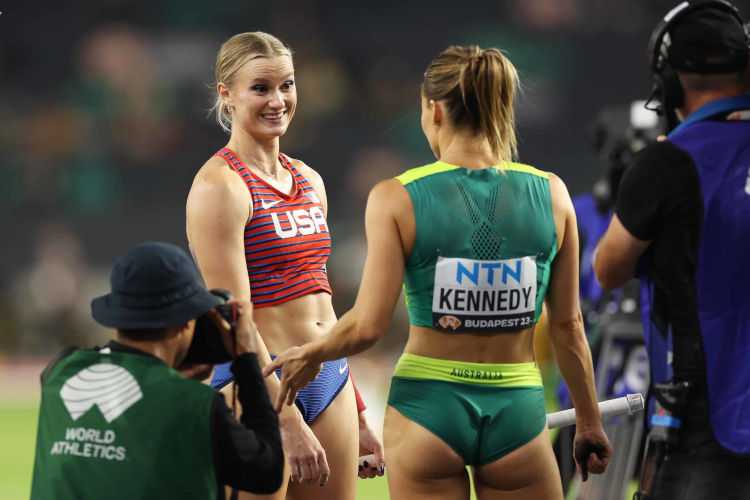 Bei 4,75 Metern sind noch 8 Starterinnen im Wettbewerb, davon schafften 5 Frauen diese Höhe und Titelverteidigerin Katie Moon ließ aus. Nächste Höhe 4,80 Meter. Murto, Sutej und Kennedy im ersten Versuch geschafft. Moon im zweiten Versuch drüber. Kennedy (AUS) und Moon (USA) schafften im ersten Versuch 4,85 Meter – beide auf Platz 1 zusammen bislang. Wilma Murto (FIN) bekommt mit übersprungenen 4,80 Metern die Bronzemedaille. Moon und Kennedy rissen 4,90 Meter im ersten Versuch. Erst Nina Kennedy und dann Moon schafften im dritten Versuch die 4,90 Meter. Dann 4,95 Meter als nächste Höhe. Beide scheiterten im ersten, zweiten und dritten Versuch. Damit beide Weltmeisterinnen 2023.